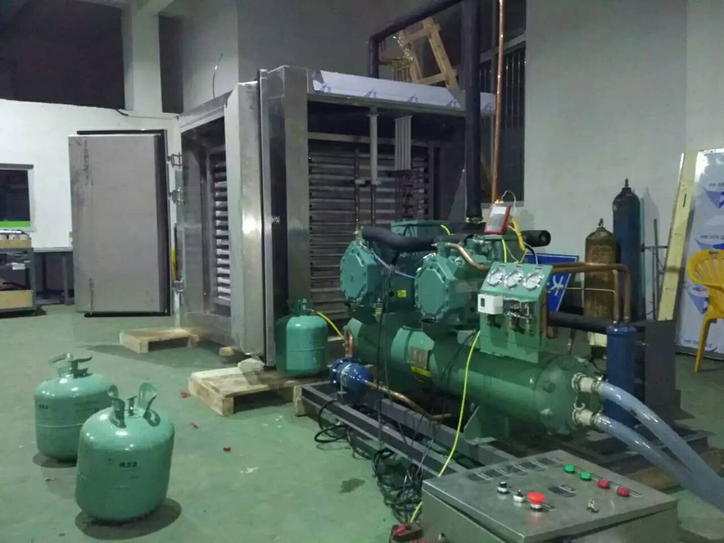 冷庫工程名稱: 一體化速凍冷庫 冷庫設(shè)計要求: 速凍量:1000KG/8小時;速凍溫度:-35度至-40度 機(jī)組品牌及匹數(shù): 北京比澤爾、30HP 庫內(nèi)蒸發(fā)器: 擱架式速凍鋁平板 應(yīng)用范圍: 海鮮加工,食品廠速凍等行業(yè)